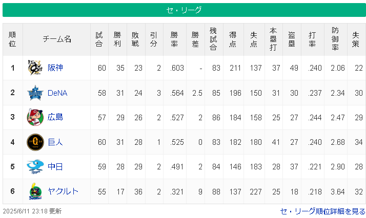 このままやとこの2球団の不安要素が出てきた方が抜かれる形になりそうやけど