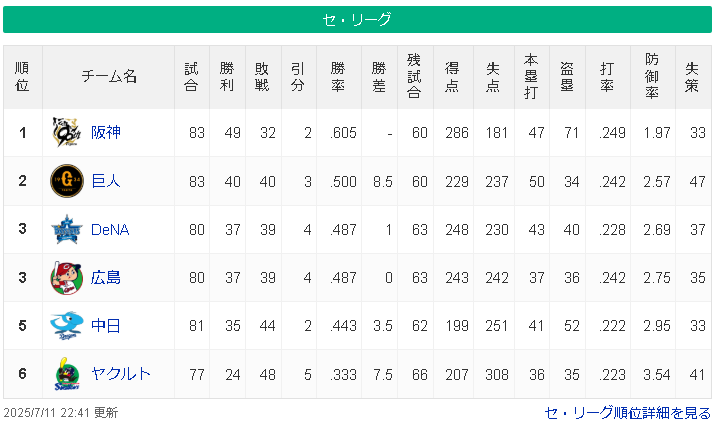 Aクラスの3球団をお得意さんにしとけばまず優勝やろ