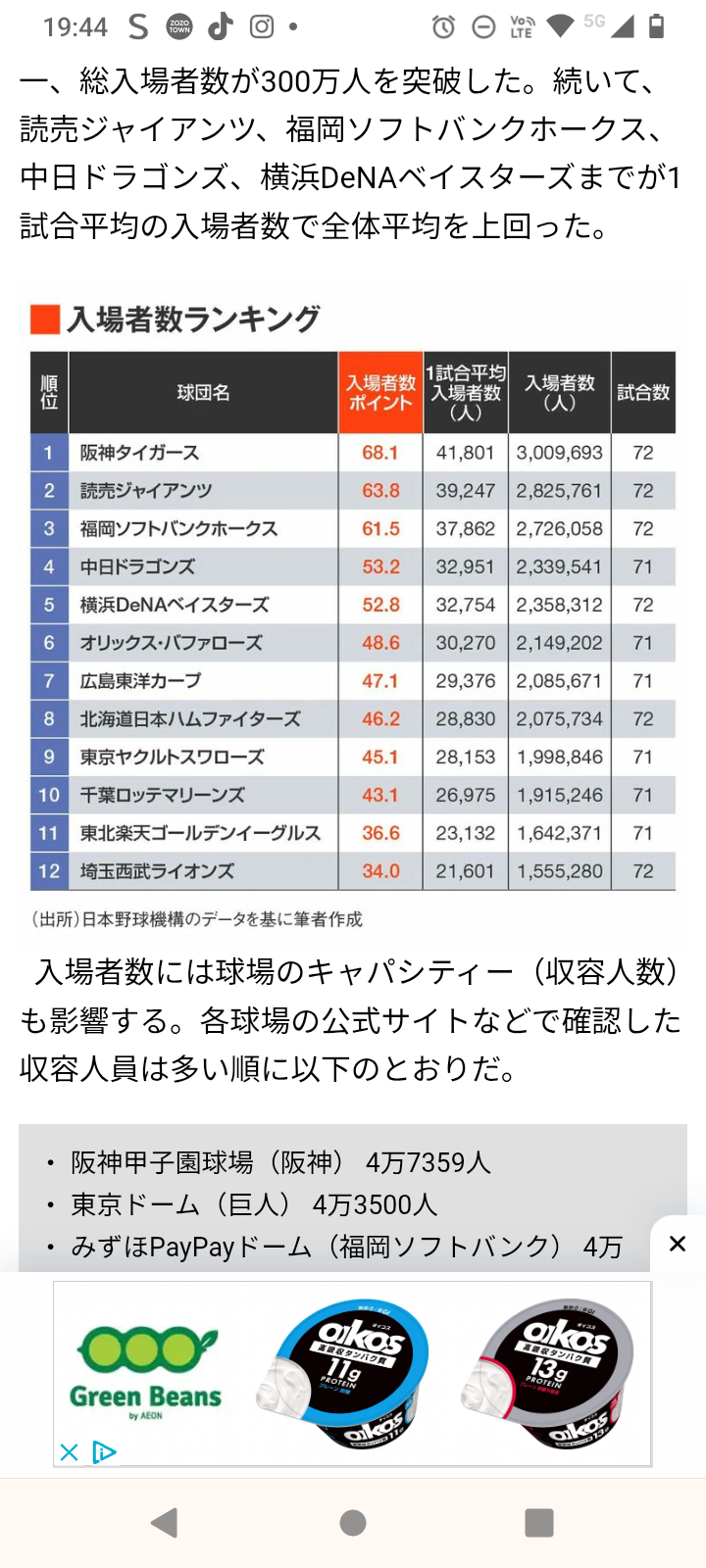阪神とかあらゆるプロリーグの中でも年間動員数かなり上位やろ