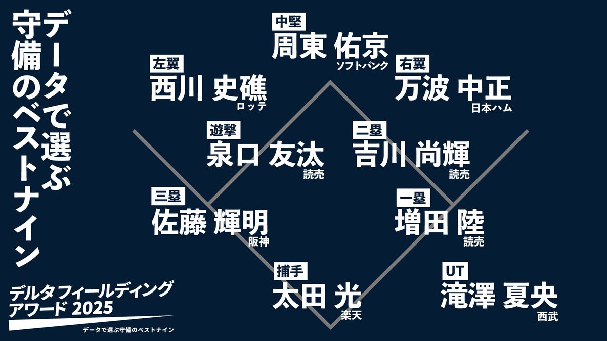 守備のベストナインを選ぶ「第54回 三井ゴールデン・グラブ賞」が12日、発表され、セ・リーグはリーグ優勝を果たした阪神から球団史上最多の7人が選ばれた。パ・リーグは9人のうち6人が初受賞となった。