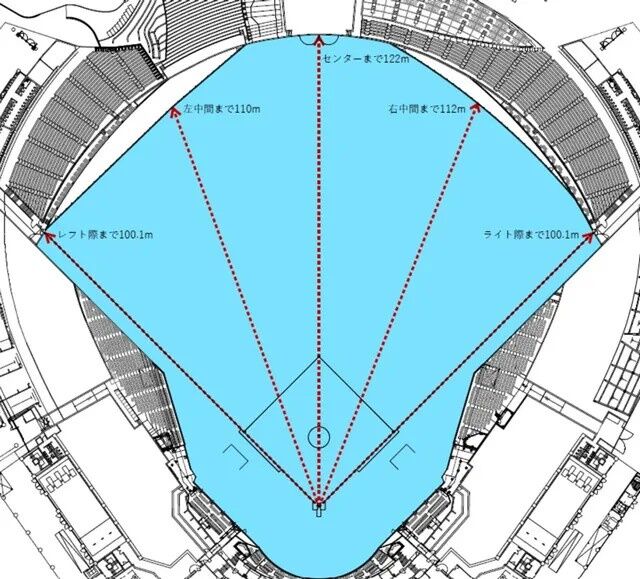 昨秋から球場改修工事が行われ、外野フェンスがこれまでよりも前方に新設。本塁から左中間の距離が最大6メートル、本塁から右中間の距離が最大4メートル短くなった。三木肇監督(48)は「実際試合してみないとわからないところが多いと思うけど、パッと見たら外野から見た方が近さを感じたね。明らかにコンパクトっていうか、前に来てるなとは思う」と印象を述べた。