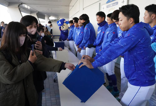 午前11時30分から球場のオープンデッキで、選手会長の柳裕也投手(29)、大島洋平外野手(38)ら10選手と公式マスコットのドアラ、シャオロンらも参加。来場者に募金活動を呼びかけ、感謝を伝えた。集まった募金は日本赤十字社などを通じ、被災地支援に役立てる。