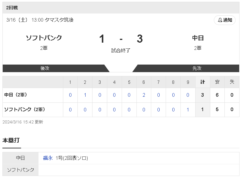 @assysan3ファームは開幕2連勝どらほー! 福永裕基が1HR2打点の活躍! 1軍での活躍期待しています。 pic.twitter.com/r9SfpJE9If