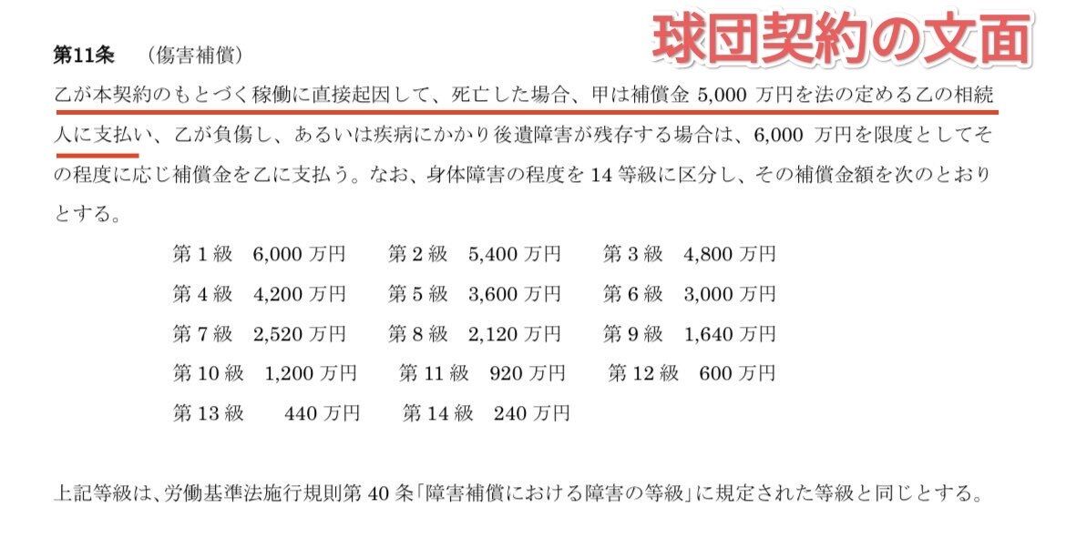 「練習に起因する死亡は遺族へ5000万円支払う」という契約を球団が遺族に教えず