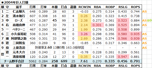 仁志二岡ペタジーニローズ高橋由伸清水阿部清原江藤