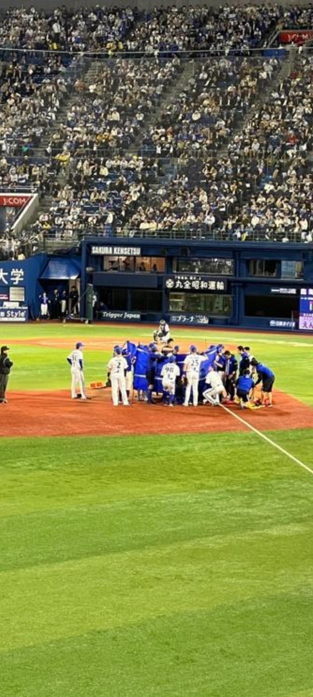 1―2の6回1死一、二塁。阪神・井上の鋭い打球が三塁ベース横でイレギュラーバウンド。ワンバウンドで三塁の守備に就いていた宮崎の左側頭部付近に直撃し、その場でうずくまった。トレーナーや選手、監督らが駆けつけ、球場は騒然。三塁付近がブルーシートで覆われる事態となった。宮崎はそのまま退き、交代となった。