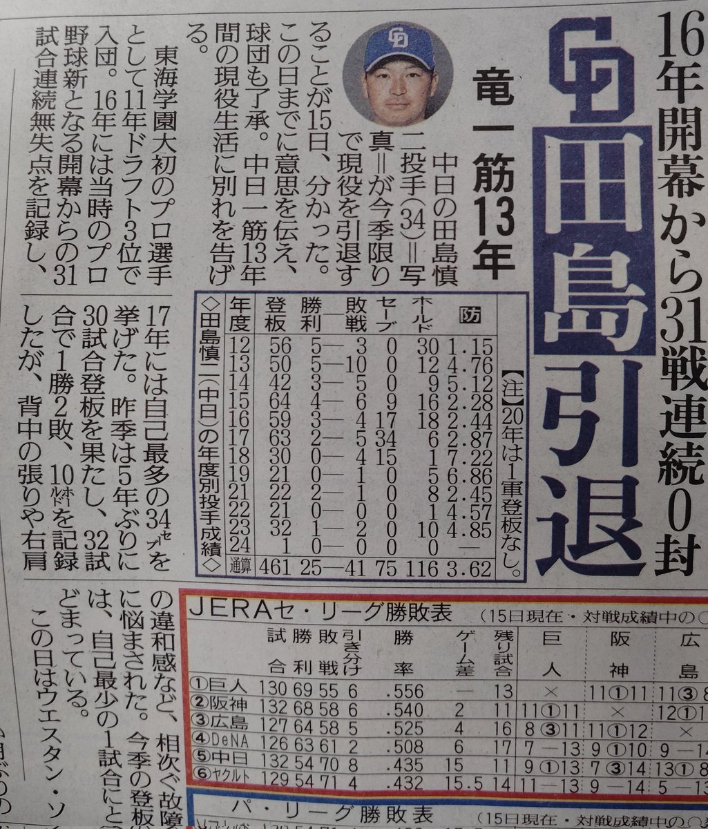 田島引退だけど活躍したのが遠い昔でほぼ記憶がない。