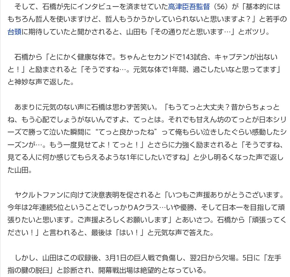 ヤクルトって怪我の内容出さないよな