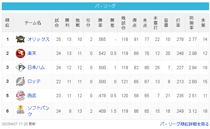 これが交流戦も終わってシーズン半分終わってならわかるがまだ4月だろ