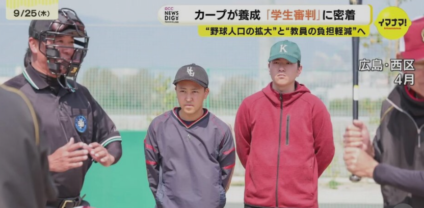 広島東洋カープはことしから「学生審判」の養成を始めています。目的は野球人口の拡大と、教育現場に広がる教員の負担軽減。中学生の野球大会に参加した大学生審判と彼らを支える関係者たちの取り組みを取材しました。