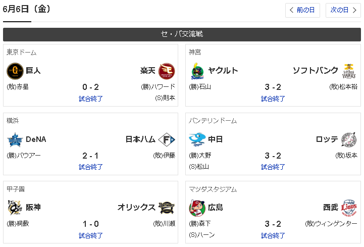 【6/5 交流戦 D4-8H】中日今季初の同一カード3連敗!先発金丸は初回4失点もそれ以降は0封! 2025年06月05日 カテゴリ:中日ドラゴンズ2025年試合結果 mixiチェック (出典 【野球】交流戦 H 8-4 D [6/5] ホークス3連勝 大関7回無失点、柳町先制打3安打3打点、野村6号3ラン 中日3タテくらう [鉄チーズ烏★])1 鉄チーズ烏 ★ :2025/06/05(木) 21:18:38.43 ID:Ut1kiP169中日. 0 0 0 0 0 0 0 2 2|4 ソフトバンク 4 0 0 0 0 0 4 0 X|8 【バッテリー】 (中)金丸、梅野、マルテ、福 - 加藤匠、石橋 (ソ)大関、尾形、大山 - 嶺井 【本塁打】 (中) (ソ)野村6号(1回裏3ラン) 試合結果:nikkansports.com/yahooスポナビ野球 https://www.nikkansports.com/baseball/professional/score/2025/il2025060506.html https://baseball.yahoo.co.jp/npb/game/2021029375/score 明日の予告先発: 中日-ロッテ (ロ)小島 和哉 (中)大野 雄大 ヤクルト-ソフトバンク (ソ)L.モイネロ (ヤ)山野 太一 http://npb.jp/announcement/starter/ (出典 【野球】交流戦 H 8-4 D [6/5] ホークス3連勝 大関7回無失点、柳町先制打3安打3打点、野村6号3ラン 中日3タテくらう [鉄チーズ烏★]) 【【6/5 交流戦 D4-8H】中日今季初の同一カード3連敗!先発金丸は初回4失点もそれ以降は0封!】の続きを読む タグ :#中日ドラゴンズ#金丸夢斗#交流戦