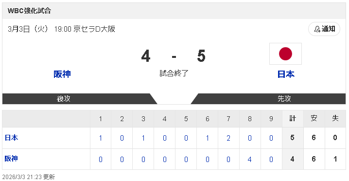 【悲報】侍ジャパン強化試合、つまらない 2026年03月04日 カテゴリ:日本代表ネタスレ mixiチェック (出典 【悲報】侍ジャパン強化試合、つまらない)1 それでも動く名無し :2026/03/03(火) 20:38:14.40 ID:Hdid5a+b00303大谷は打たないしなんか苦戦してるし (出典 【悲報】侍ジャパン強化試合、つまらない) 【【悲報】侍ジャパン強化試合、つまらない】の続きを読む タグ :#侍ジャパン#日本代表